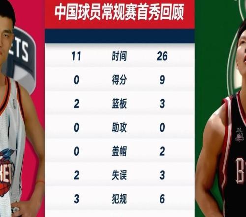 中国NBA首轮秀首秀数据:姚明0分2板2失误,易建联9分3板2帽6犯离场