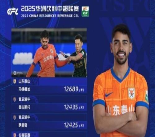 中超第27轮跑动距离:马德鲁加第一