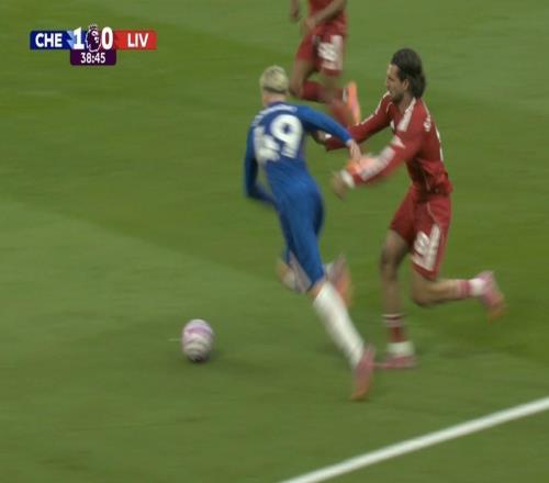 英超第7轮,切尔西主场对阵利物浦,上半场加纳乔禁区内倒地,主裁判没有判罚点球,英超官方对此进行解释。比赛第39...