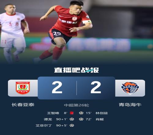 亚泰在补时阶段打入两球以22战平海牛谭龙首开纪录艾菲尔丁在最后一刻追平_中超直播免费直播视频直播