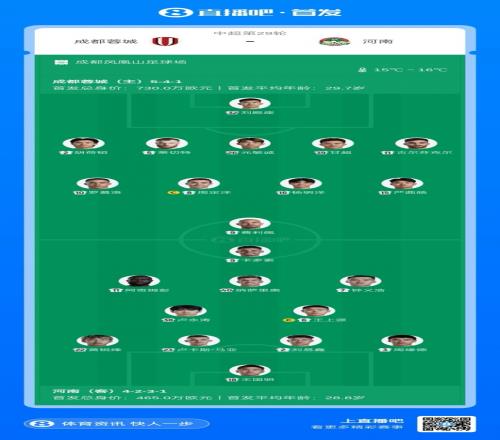 10月31日宣 北京时间19:35,中超联赛第29轮,成都蓉城将在主场迎战河南队。比赛开始前,双方的首发阵容已经公布。...