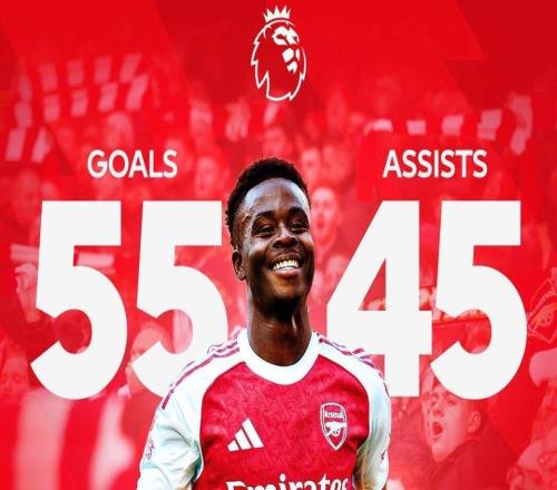 200场55球45助攻,萨卡已经在英超直接参与100个进球