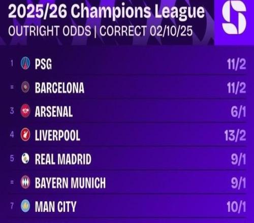 雷速体育10月2报道 权威统计机构使用超级计算机进行计算后,认为阿森纳是本赛季欧冠的最大热门,利物浦、巴黎...