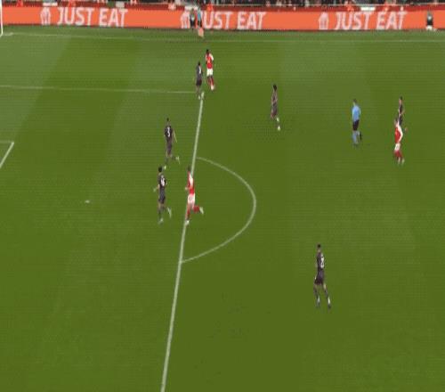 第92分钟,接到厄德高的助攻,萨卡打穿门将小门,锁定胜局。