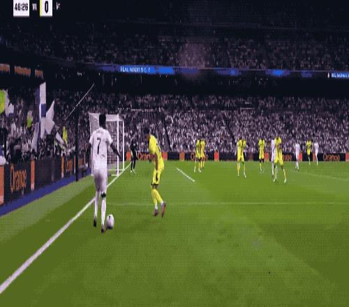 第47分钟,姆巴佩头球摆渡,维尼修斯一个假动作晃开防守,之后的射门被后卫挡了一下产生变向,门将扑救不及。