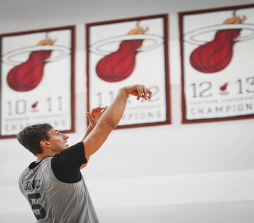 2023-24赛季,二年级的约维奇在热火打了46场常规赛,其中38场首发。场均出战19.5分钟,得到7.7分4.2篮板2助攻,三项命中率:45.2%,39.9%,70.2%。到了季后赛,他的三分命中率升至40.9%,外线投射终于练出来了。