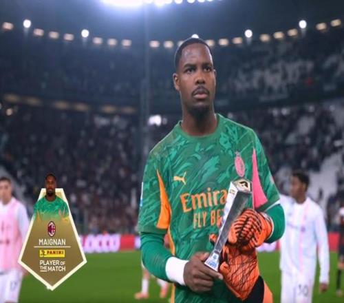 意甲第6轮一场焦点战,尤文图斯主场0-0与AC米兰互交白卷。赛后,迈尼昂被意甲官方评选为本场比赛的最佳球员。