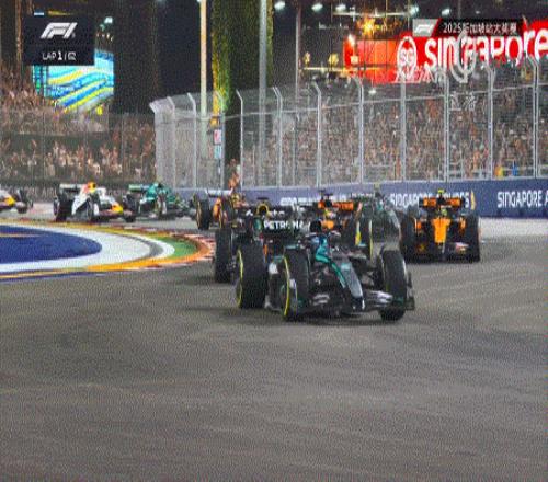 随着五盏红灯熄灭,2025赛季新加坡大奖赛正式开始!起步之后,拉塞尔表现出色守住第1,维斯塔潘不遑多让稳住第2,但第5起步诺里斯发车后的表现极其强硬!超越安东内利之后又超越自己的队友皮亚斯特里升至第3!