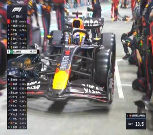 第二十圈:维斯塔潘进站并换上了一套全新的硬胎