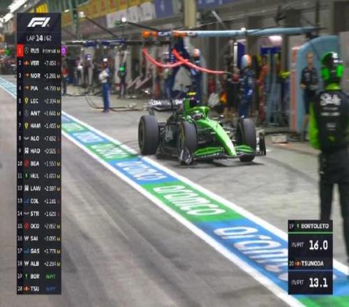 第十四圈:博托莱托和角田进站,索伯赛车更换发车阶段和斯托尔碰撞受损的前翼