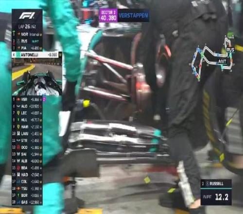 第二十六圈:拉塞尔进站,出站后落在了第四位