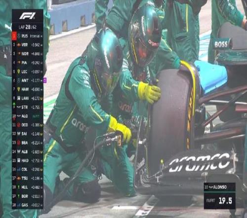第二十八圈:阿隆索进站换胎,用时9.2秒