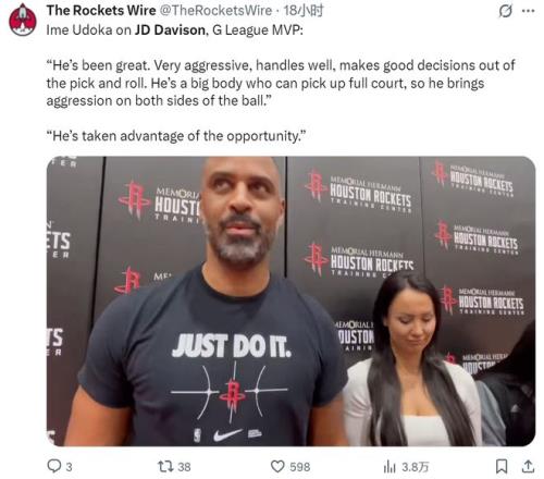 从五星高中生到 NCAA 失意者,从 NBA 边缘人到发展联盟 MVP,如今又得到火箭主帅的力挺,JD - 戴维森的每一步都在跟 “不被看好” 较劲。