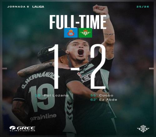 雷速体育10月6报道 由于普阿多读秒点球罚丢,贝蒂斯最终在客场2-1顽强逆转西班牙人,豪取西甲三连胜。