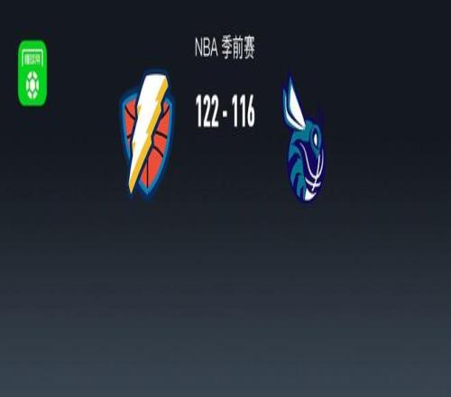 北京时间10月10日NBA 季前赛,俄克拉荷马雷霆对阵夏洛特黄蜂。半场雷霆64-57黄蜂,最终雷霆122-116黄蜂。俄克拉荷马雷霆以赛亚-乔19分2板,亚历山大16分1板5助;夏洛特黄蜂特雷-曼18分4板2助,塞克斯顿15分1板2助。