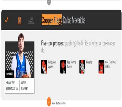 这场比赛之前,美国媒体The Ringer评选了25-26赛季联盟百大球星,没想到新科状元弗拉格直接排在了第61的位置上,就冲他的天赋他就已经碾压了多位NBA现役球员了?这个排名很明显虚高。