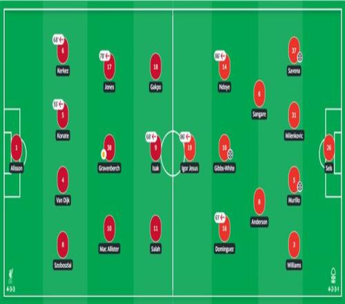 第78分钟,奥马里·哈钦森切入禁区劲射,阿利松扑救脱手,摩根·吉布斯-怀特补射空门得手,锁定胜局。