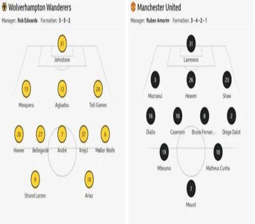 阿莫林对锋线进行了调整,齐尔克泽沦为替补,反戈旧主的库尼亚担任中锋,搭配梅森·芒特和姆贝莫,阿马德·迪亚洛回到右边翼卫的位置,马兹拉维则替代莱尼·约罗客串中后卫。